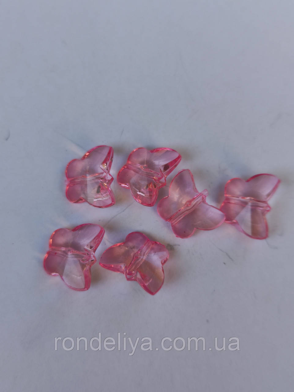 Намистини акрил прозорі "Метелики" 12*14 мм Рожевий